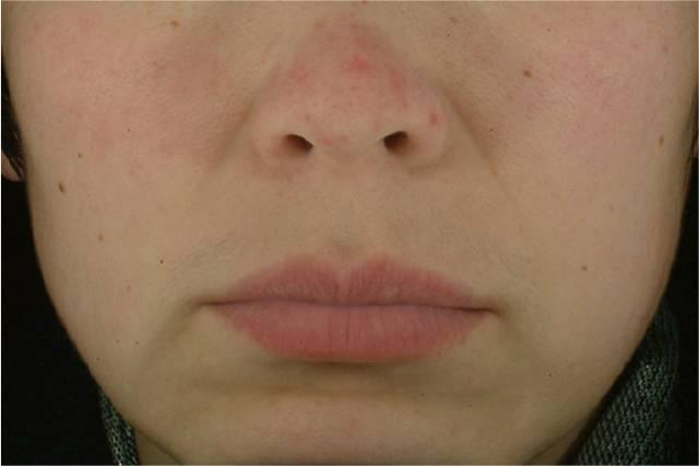 部分患者面部会出现丘疹,主要分布在鼻尖、两侧脸颊、下颚等部位,也可能伴有瘙痒感。